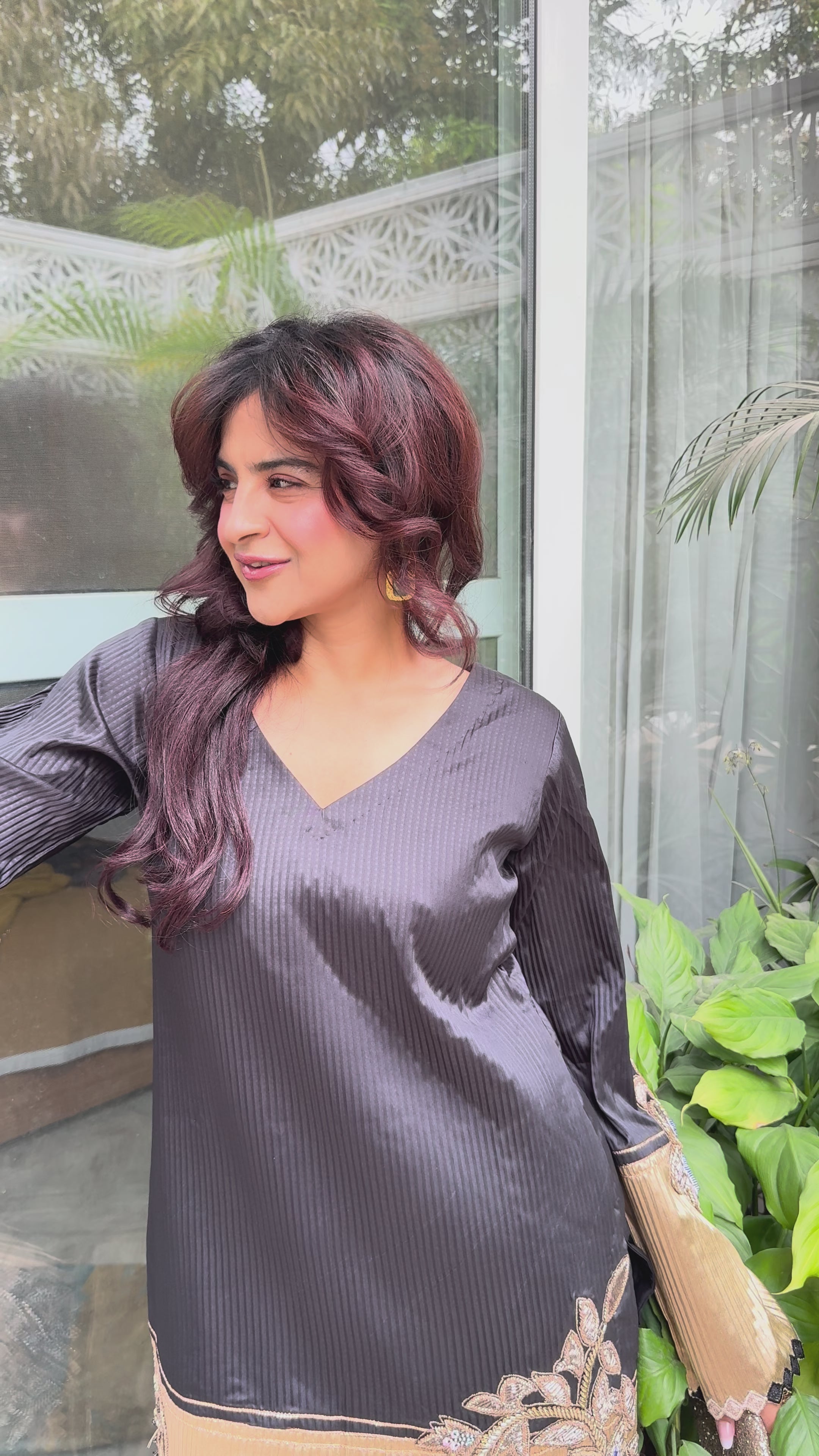 Crafted in a luxe, soft shimmer fabric, this kurta set beautifully blends contemporary elegance with traditional artistry. Adorned with intricate handwork and delicate zari detailing, each piece reflects fine craftsmanship and attention to detail. The statement sleeves, rich textures, and thoughtfully placed accents add a distinctive charm, while the coordinated bottoms ensure comfort with sophistication. Perfect for festive gatherings, intimate celebrations, and effortless day-to-evening styling.